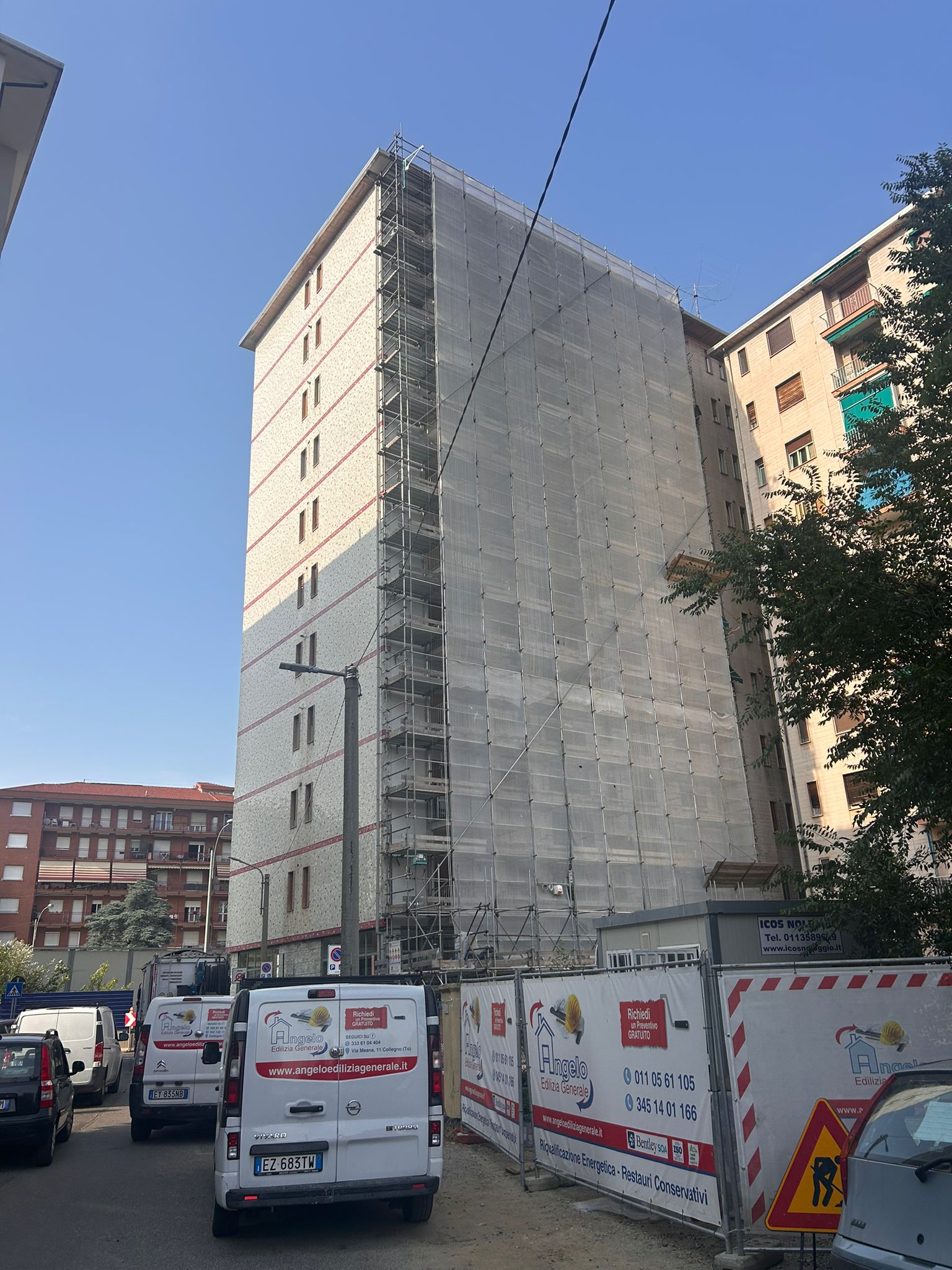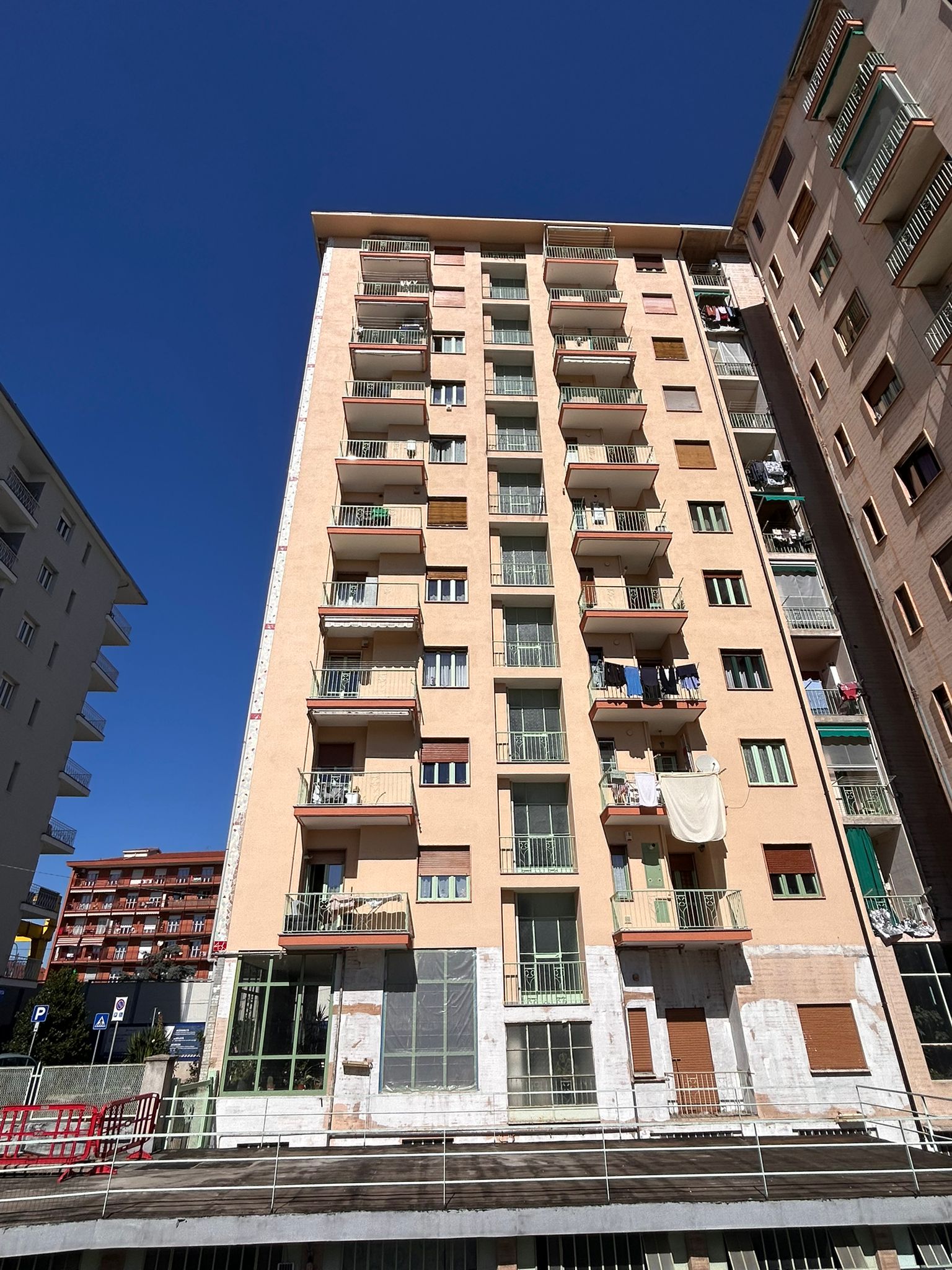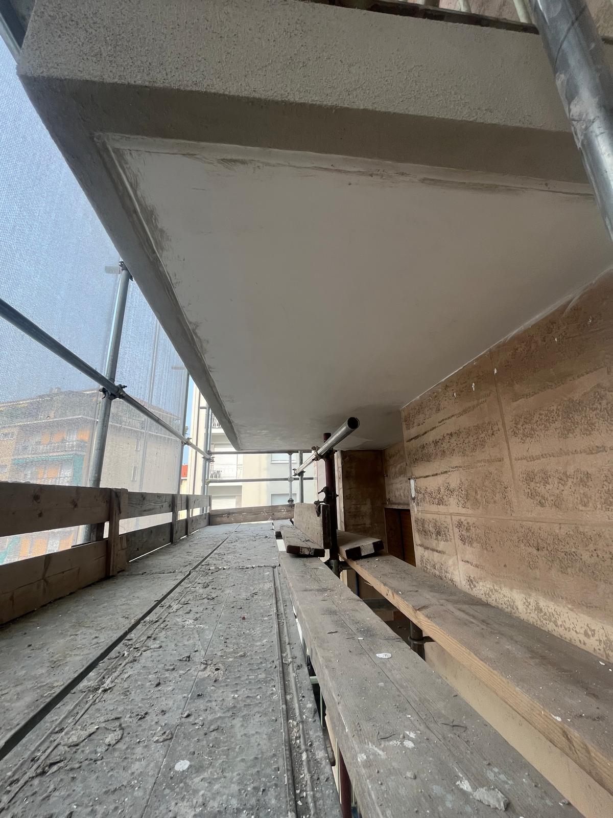 Intervento di restauro conservativo della facciata cortile del condominio di Corso Francia 155 a Collegno. Eseguite decorazioni e trattamenti protettivi sulle superfici in cemento armato. Realizzata rasatura e tinteggiatura integrale delle facciate intonacate. Completata la revisione e verniciatura delle opere in ferro di balconi e parapetti. Installato un nuovo isolamento termico del piano piloty, migliorando efficienza energetica e comfort abitativo.