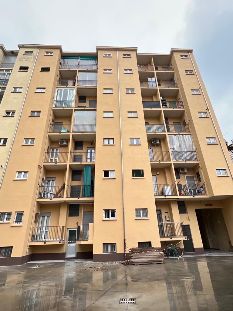 Intervento di ripristino e decorazione della facciata lato strada e lato cortile, con rifacimento dei pavimenti dei balconi e lavaggio della facciata principale lato strada.