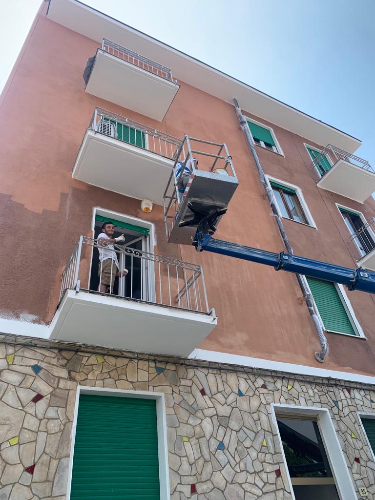 L’intervento consiste, principalmente, nel ripristino e decorazione della facciata principale e di quella lato cortile, ripristino frontalini, balconi e sottobalconi nonchè la decorazione dell’androne passo carraio.