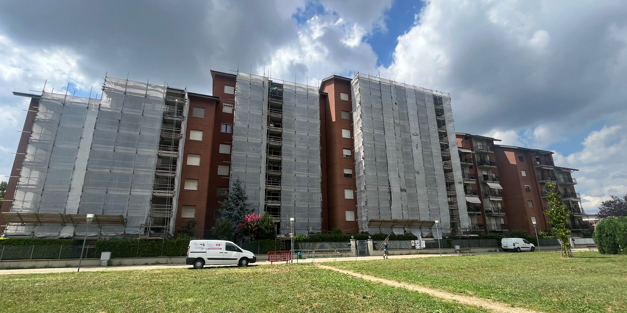 Manutenzione ordinaria delle facciate e della corte interna con allestimento ponteggi e opere di sicurezza. Rifacimento completo dei balconi (demolizione pavimentazioni, nuova impermeabilizzazione, posa piastrelle e copertine), ripristino frontalini e trattamento ferri ammalorati. Decorazione e tinteggiatura delle parti intonacate di facciata e degli sporti di copertura. Verniciatura ringhiere e adeguamento ancoraggi balaustre. Risanamento muretti d’ingresso pedonale.