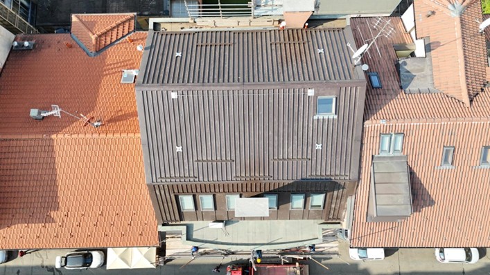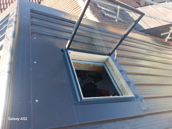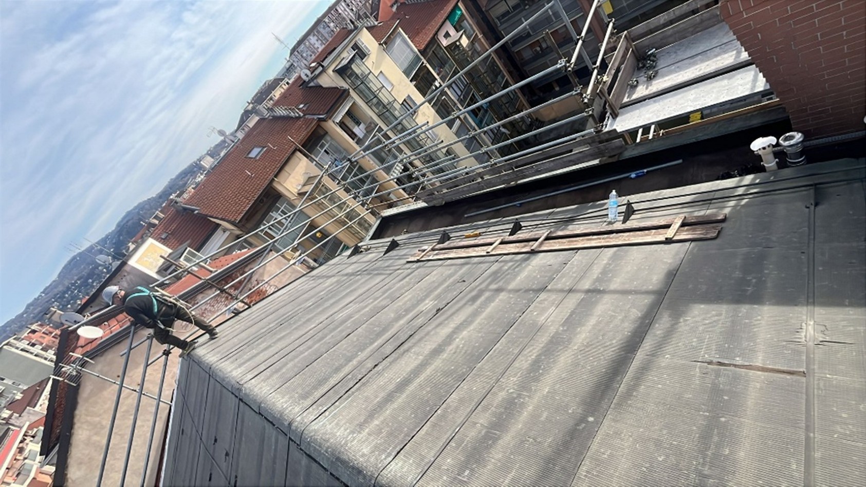 Intervento completo di rifacimento copertura su stabile residenziale: allestimento del cantiere e messa in sicurezza dell’area, installazione dei ponteggi, rimozione della vecchia copertura e realizzazione del nuovo tetto ventilato in lamiera. Il lavoro ha compreso posa della struttura di supporto, impermeabilizzazione, installazione di lucernari e cura delle finiture, per garantire maggiore isolamento, durata nel tempo e un risultato estetico moderno e funzionale.