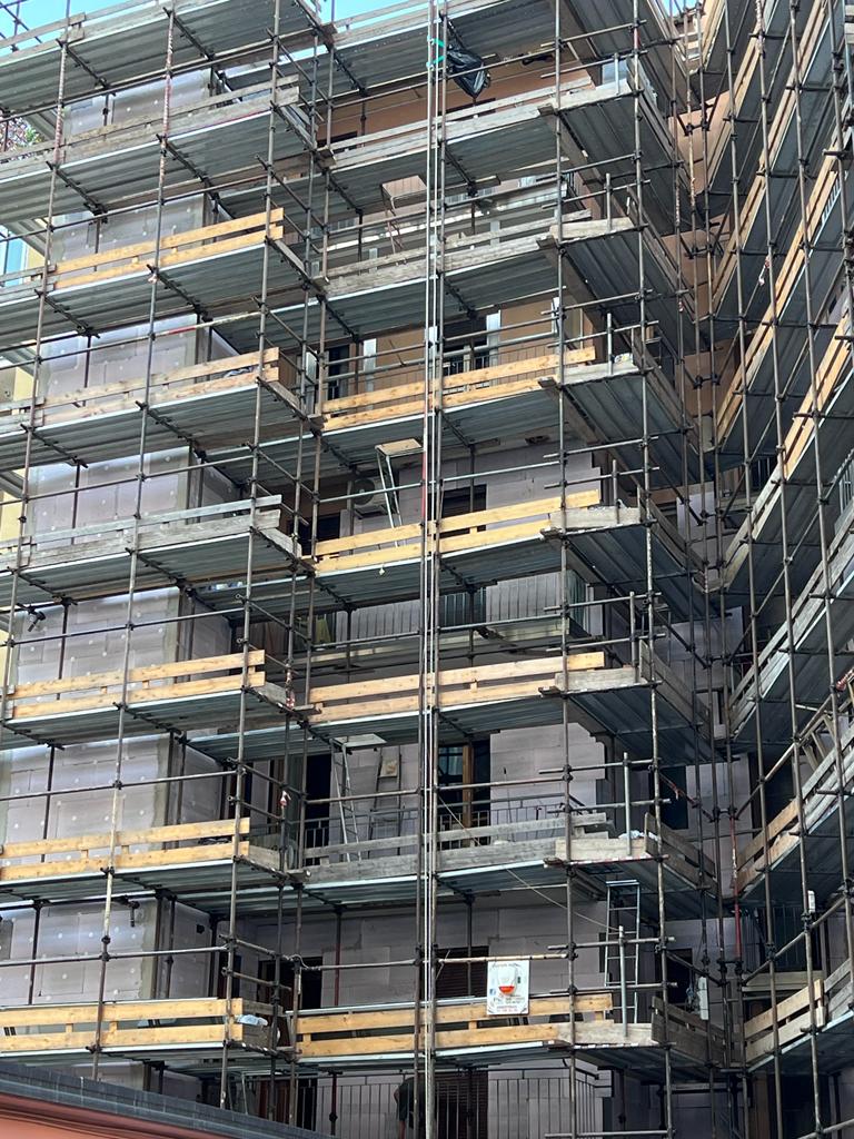 Lavori di isolamento termico della facciata lato cortile e del frontespizio, eseguiti con sistema a cappotto, e coibentazione del sottotetto mediante posa di materiale isolante. Intervento realizzato su edificio esistente, comprensivo delle opere accessorie necessarie alla corretta esecuzione.