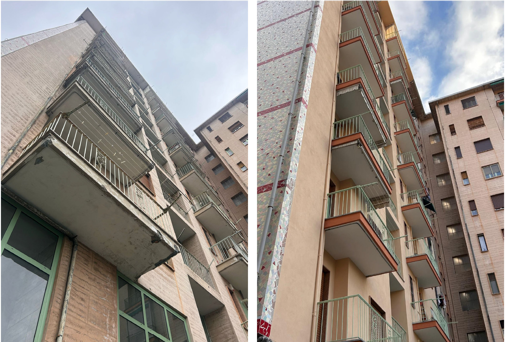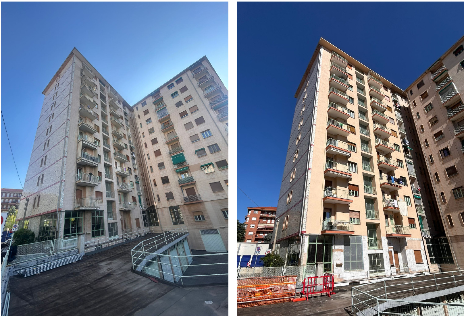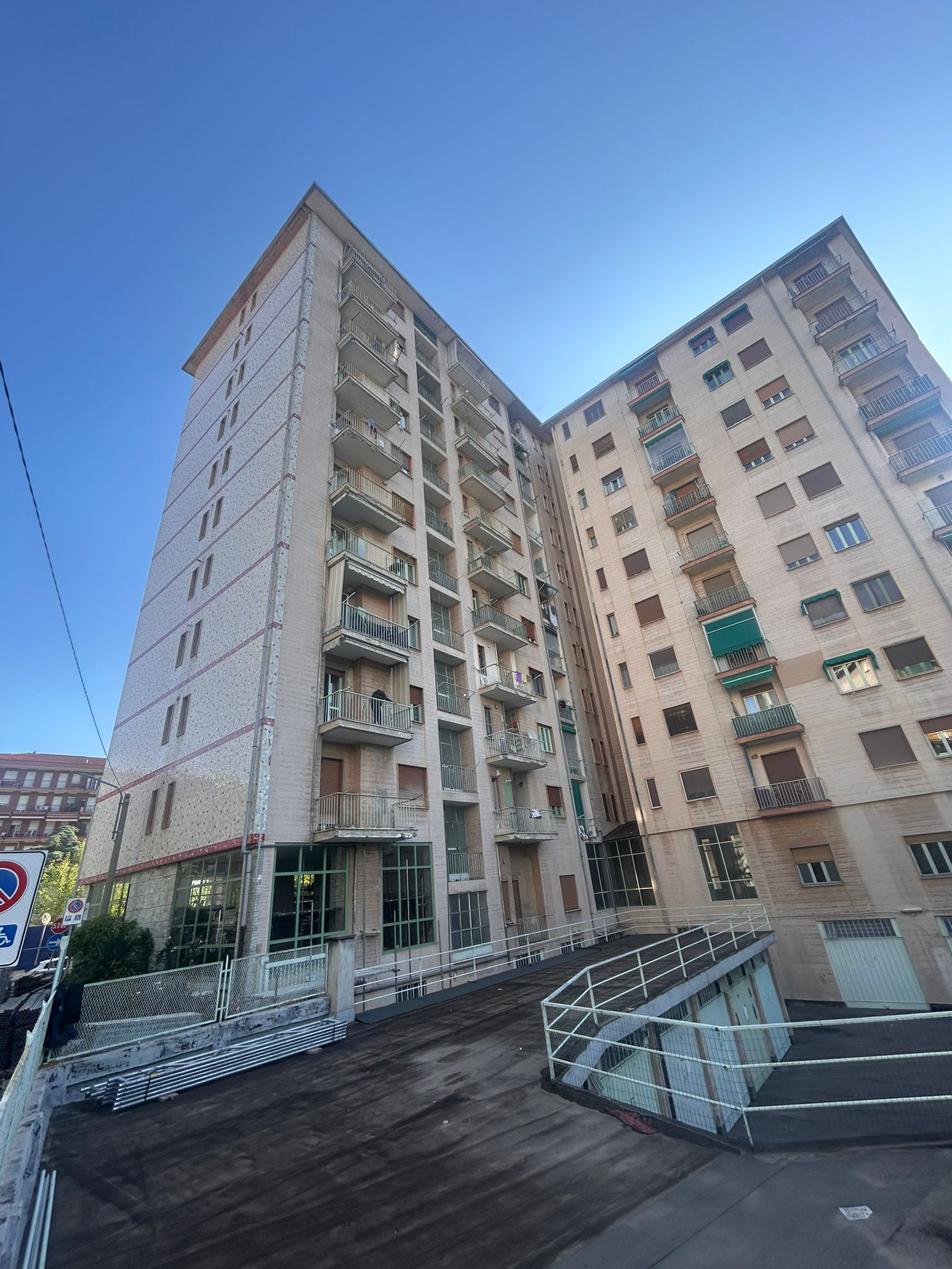 Intervento di restauro conservativo della facciata cortile del condominio di Corso Francia 155 a Collegno. Eseguite decorazioni e trattamenti protettivi sulle superfici in cemento armato. Realizzata rasatura e tinteggiatura integrale delle facciate intonacate. Completata la revisione e verniciatura delle opere in ferro di balconi e parapetti. Installato un nuovo isolamento termico del piano piloty, migliorando efficienza energetica e comfort abitativo.