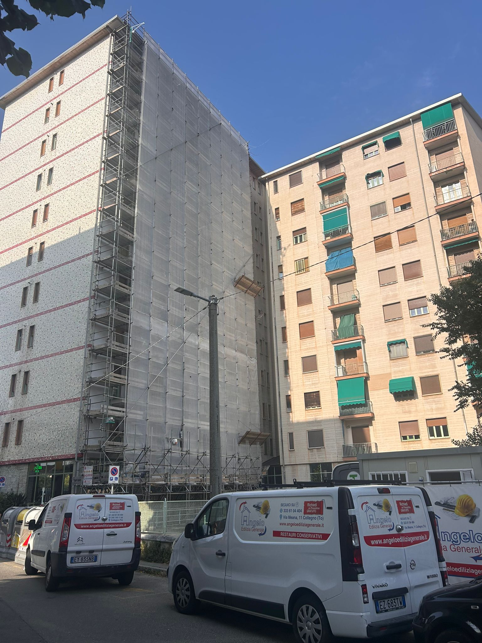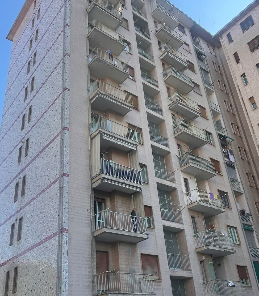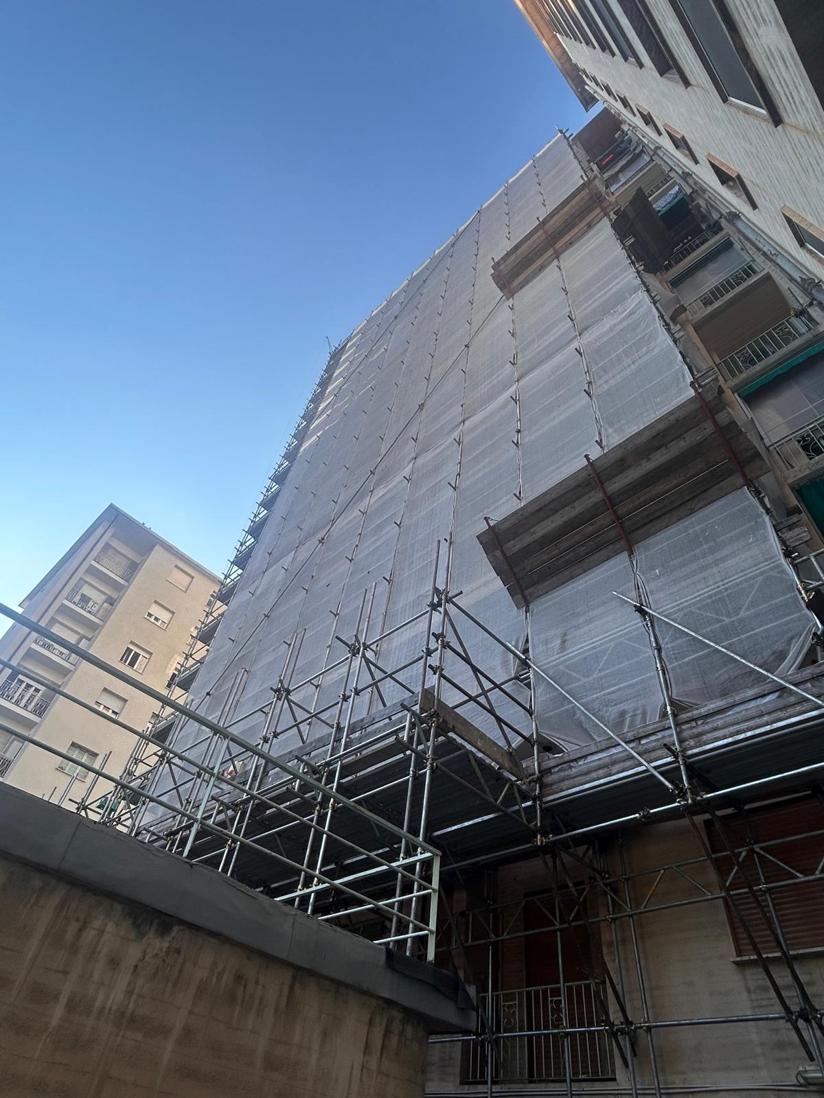 Intervento di restauro conservativo della facciata cortile del condominio di Corso Francia 155 a Collegno. Eseguite decorazioni e trattamenti protettivi sulle superfici in cemento armato. Realizzata rasatura e tinteggiatura integrale delle facciate intonacate. Completata la revisione e verniciatura delle opere in ferro di balconi e parapetti. Installato un nuovo isolamento termico del piano piloty, migliorando efficienza energetica e comfort abitativo.
