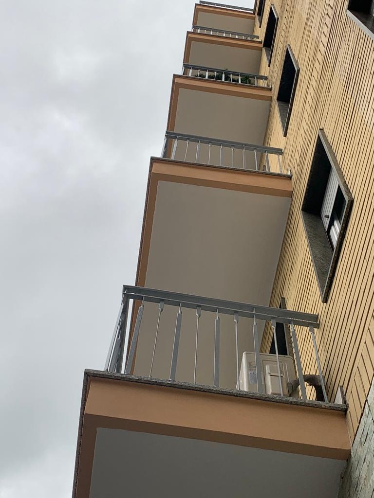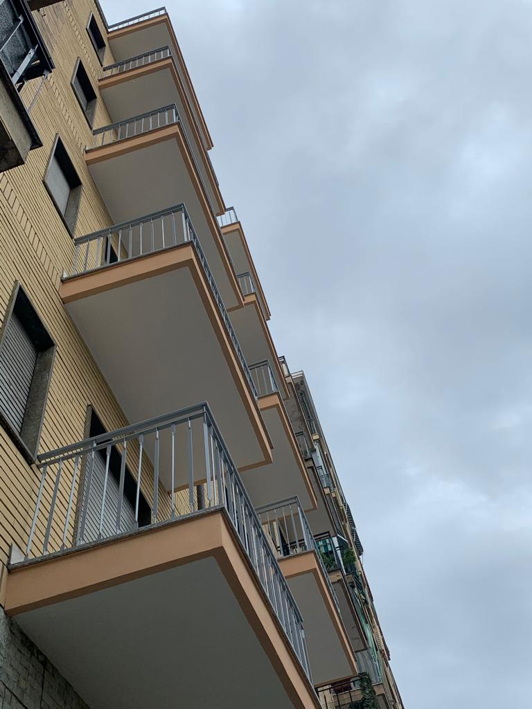 Intervento di ripristino e decorazione della facciata lato strada e lato cortile, con rifacimento dei pavimenti dei balconi e lavaggio della facciata principale lato strada.