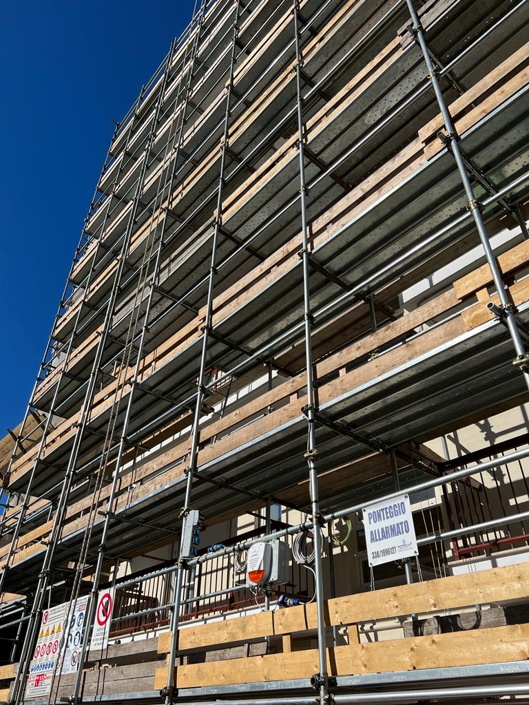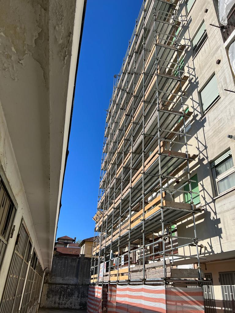 Condominio Via Marsala 15 - Collegno Intervento di ripristino e decorazione della facciata lato strada e lato cortile, con sostituzione dei vetri di parapetto e rifacimento dei pavimenti esterni.