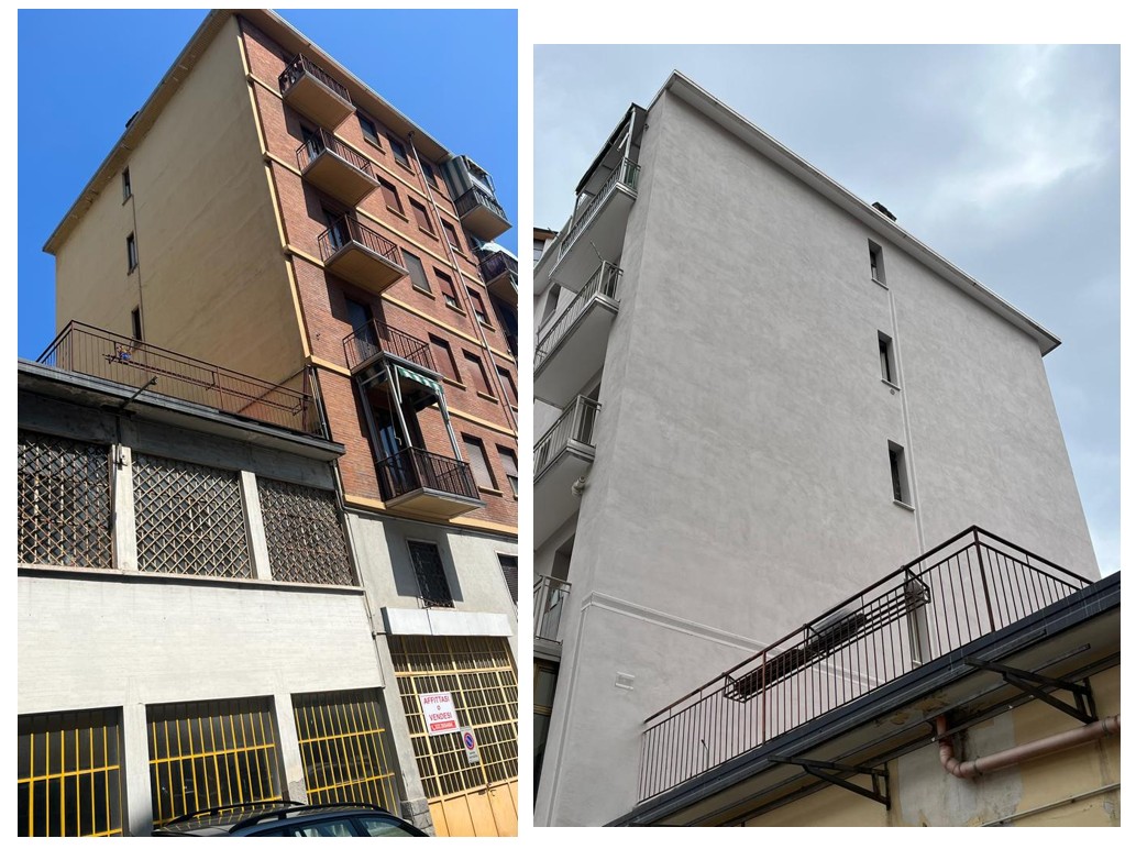 Lavori di isolamento termico della facciata lato cortile e del frontespizio, eseguiti con sistema a cappotto, e coibentazione del sottotetto mediante posa di materiale isolante. Intervento realizzato su edificio esistente, comprensivo delle opere accessorie necessarie alla corretta esecuzione.